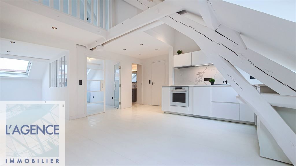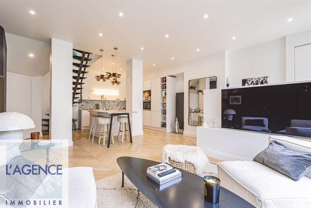 Venez découvrir ce magnifique appartement en duplex entièrement rénové au dernier étage (3ème). Celui-ci est composé au premier niveau d'une grande pièce de vie avec cuisine ouverte meublée et équipée (four, plaque induction, hotte, lave-vaisselle et cave à vin), d'un bureau ou…